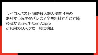サイコ×パスト 猟奇殺人潜入捜査 サイコ×パスト 猟奇殺人潜入捜査 4巻のあらすじ&ネタバレは?全巻無料でどこで読めるか&raw/hitomi/zip/pdf利用のリスクも一緒に検証 サイコ×パスト 猟奇殺人潜入捜査 4巻:過去の闇に潜む洗脳の恐怖を紐解くこんにちは、ミステリー漫画大好き読者の皆さん! 今日のブログ記事では、人気急上昇中の本田真吾先生の傑作『サイコ×パスト 猟奇殺人潜入捜査』の4巻にスポットを当てて、詳し... 2025.10.13 サイコ×パスト 猟奇殺人潜入捜査青年マンガ