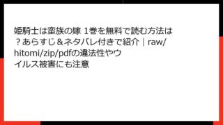姫騎士は蛮族の嫁 姫騎士は蛮族の嫁 1巻を無料で読む方法は?あらすじ&ネタバレ付きで紹介|raw/hitomi/zip/pdfの違法性やウイルス被害にも注意 姫騎士は蛮族の嫁 1巻:異世界の運命が交錯する壮絶な婚姻譚皆さん、こんにちは! 今日のブログでは、講談社から刊行された人気ファンタジー漫画『姫騎士は蛮族の嫁』第1巻のあらすじを、たっぷりとお届けします。この作品は、2021年にスタートしたコ... 2025.10.13 姫騎士は蛮族の嫁少年マンガ