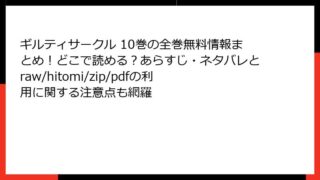 ギルティサークル ギルティサークル 10巻の全巻無料情報まとめ!どこで読める?あらすじ・ネタバレとraw/hitomi/zip/pdfの利用に関する注意点も網羅 ギルティサークル 10巻:快楽と戦慄のサークルサスペンスがさらに深まる一冊みなさん、こんにちは! ダークでスリリングな大学サークルミステリーがお好きな方は必読の『ギルティサークル』。今回取り上げるのは、単行本10巻です。この作品は、作者の山... 2025.10.13 ギルティサークル少年マンガ