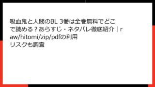 BLマンガ 吸血鬼と人間のBL 3巻は全巻無料でどこで読める?あらすじ・ネタバレ徹底紹介|raw/hitomi/zip/pdfの利用リスクも調査 『吸血鬼と人間のBL』3巻の魅力に迫る! 異種族カップルの甘くて切ない日常を深掘りこんにちは、BL漫画大好きブロガーのあかりです! 今日は、ナンバーナイン・Blendレーベルから刊行されている人気作『吸血鬼と人間のBL』3巻のあらすじを、た... 2025.10.13 BLマンガ吸血鬼と人間のBL
