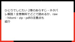 ひとりでしにたい ひとりでしにたい 2巻のあらすじ・ネタバレ解説!全巻無料でどこで読めるか、raw・hitomi・zip・pdfの注意点も紹介 『ひとりでしにたい』2巻:終活の旅が加速する、鳴海の葛藤と発見こんにちは、漫画好きのブロガーです。今日は、カレー沢薫先生の傑作『ひとりでしにたい』の2巻について、詳しくあらすじを振り返ってみましょう。この作品は、35歳独身の美術館学芸員・山... 2025.10.14 ひとりでしにたい青年マンガ