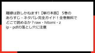 女性マンガ 離縁は致しかねます!【単行本版】 5巻のあらすじ・ネタバレ完全ガイド!全巻無料でどこで読めるか?raw・hitomi・zip・pdfの落とし穴に注意 大正ロマンスの傑作!『離縁は致しかねます!【単行本版】 5巻』の魅力的なあらすじを徹底解説こんにちは、漫画好きの皆さん! 今日は、大正時代を舞台にした心揺さぶるラブストーリー『離縁は致しかねます!』の単行本版5巻について、詳しくお話ししてい... 2025.10.14 女性マンガ離縁は致しかねます!【単行本版】