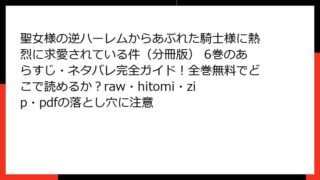 少女マンガ 聖女様の逆ハーレムからあぶれた騎士様に熱烈に求愛されている件(分冊版) 6巻のあらすじ・ネタバレ完全ガイド!全巻無料でどこで読めるか?raw・hitomi・zip・pdfの落とし穴に注意 聖女様の逆ハーレムからあぶれた騎士様に熱烈に求愛されている件(分冊版)6巻:熱い恋の試練と絆の深化みなさん、こんにちは! ファンタジーロマンス漫画が大好きなブログ主です。今日は、七月タミカさん作画、クレインさん原作の人気作『聖女様の逆ハーレ... 2025.10.14 少女マンガ聖女様の逆ハーレムからあぶれた騎士様に熱烈に求愛されている件(分冊版)