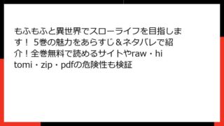 もふもふと異世界でスローライフを目指します! もふもふと異世界でスローライフを目指します! 5巻の魅力をあらすじ&ネタバレで紹介!全巻無料で読めるサイトやraw・hitomi・zip・pdfの危険性も検証 もふもふと異世界でスローライフを目指します! 5巻 徹底レビュー:アリトの冒険がさらに深まる一冊こんにちは、ファンタジー漫画大好きブロガーのもふ子です! 今日は、癒しと冒険が融合した人気作『もふもふと異世界でスローライフを目指します!』の5... 2025.10.14 もふもふと異世界でスローライフを目指します!青年マンガ