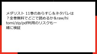 メダリスト メダリスト 11巻のあらすじ&ネタバレは?全巻無料でどこで読めるか&raw/hitomi/zip/pdf利用のリスクも一緒に検証