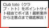 Club toto(クラブ・トト)ポイ活比較ガイド:最新案件から将来性まで徹底解説!賢く稼ぐ秘訣を公開 Club toto(クラブ・トト)