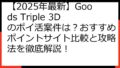 この記事を読めば、Goods Triple 3Dのポイ活攻略に関する疑問はすべて解消されるはずです。