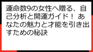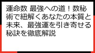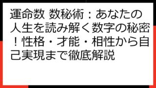 宿命数・運命数・使命数・天命数:数秘術で読み解くあなたの魂の羅針盤この記事では、数秘術の世界へ足を踏み入れ、あなたの内なる羅針盤を読み解く方法をご紹介します。 宿命数、運命数、使命数、そして天命数、これら四つの数字が、あなたの人生にどのよう...