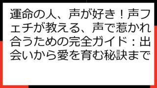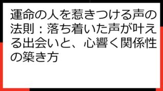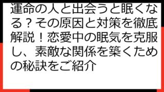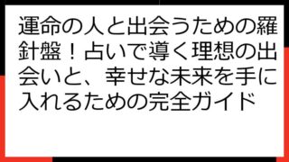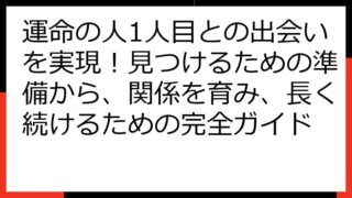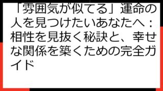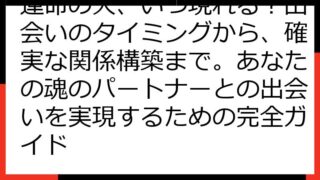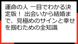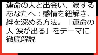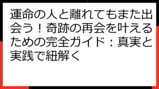 運命の再会を科学する:離れてもまた出会うための真実と実践この記事では、「運命の人 離れてもまた出会う」という奇跡を、科学的な視点と実践的なアプローチで紐解いていきます。運命の人とは何か、なぜ離れてしまうのか、そして再会を果たすにはどうすれば...