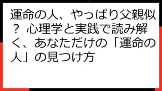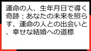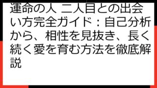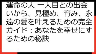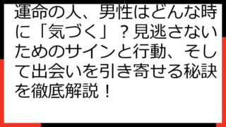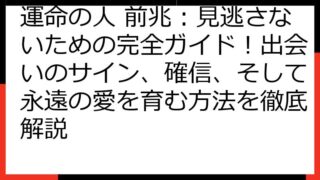 運命の人?男性が「気づく」瞬間を徹底解剖!見逃さないためのサインと行動この記事では、「運命の人 男性 気づく」というキーワードで検索しているあなたが、運命の人との出会いを確実なものにするための情報を提供します。男性が「運命の人」だと気づく瞬...