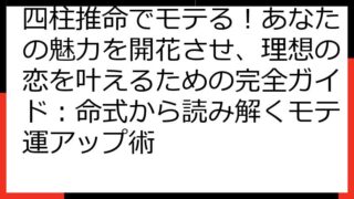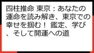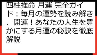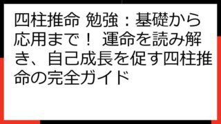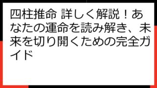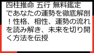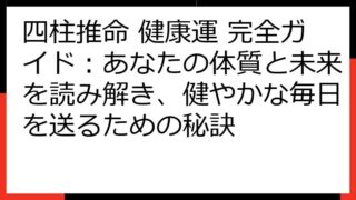 四柱推命で読み解く!あなたの健康運と生涯の傾向四柱推命は、あなたの生まれ持った運勢を読み解く占術です。特に健康運は、誰もが気になるテーマでしょう。この記事では、四柱推命の命式からあなたの健康傾向を分析し、具体的な改善策やライフステージ別の注...