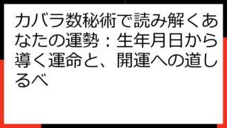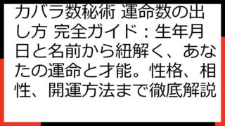 カバラ数秘術の深淵へ:起源と歴史を紐解く旅ようこそ、カバラ数秘術の世界へ!この記事では、奥深いカバラ数秘術の起源と歴史を、分かりやすく紐解いていきます。古代ユダヤ神秘主義から現代の占術まで、その変遷を辿り、数秘術が持つ魅力と可能性を探求しま...