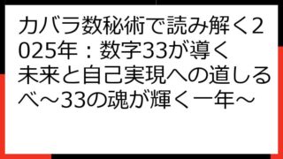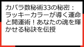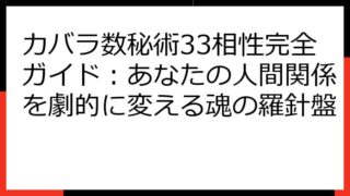カバラ数秘術33 相性:魂の響きを読み解き、深遠なる関係性を紐解くようこそ、カバラ数秘術の世界へ!この記事では、「カバラ数秘術 33 相性」というキーワードにご興味をお持ちのあなたに向けて、33マスターナンバーの相性について深く掘り下げてい...