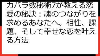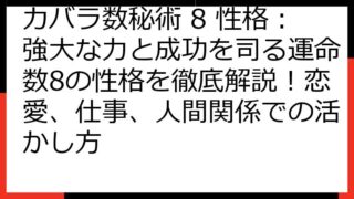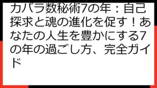 カバラ数秘術 ライフサイクル: 深奥なる人生の周期と自己理解への道この記事では、カバラ数秘術におけるライフサイクルという概念について、深く掘り下げていきます。人生を数字の周期で捉え、自己理解を深めるための方法を探求しましょう。各ライフサイク...