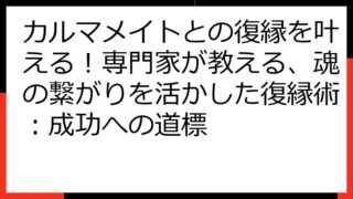 カルマメイトによるモラハラ:見破り、逃げ、そして自己回復への道この記事は、あなたを「カルマメイト モラハラ」という苦しみから解放し、より良い未来へと導くためのものです。カルマメイトとの関係性の中で、モラハラに苦しんでいるあなたへ、この問題の...