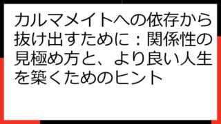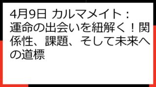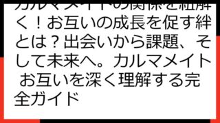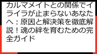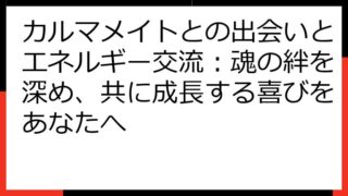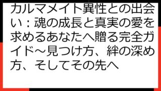 カルマメイト異性との出会い:魂の絆を見つけ、愛を育むための完全ガイドこの記事では、「カルマメイト 異性」というキーワードに興味を持つあなたへ、魂の繋がりを持つ異性との出会い、そしてその関係性を深めていくための情報を詳しく解説します。カルマメ...