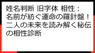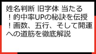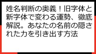 姓名判断 旧字体の奥義:的中率を左右する秘訣と徹底解析姓名判断の世界へようこそ!このブログ記事では、「姓名判断 旧字体 当たる」というキーワードで情報を探しているあなたのために、旧字体姓名判断の奥深い世界を徹底的に解説します。なぜ旧字体での...