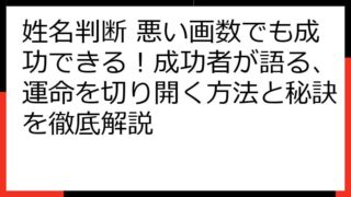 姓名判断 姓名判断 悪い画数でも成功できる!成功者が語る、運命を切り開く方法と秘訣を徹底解説