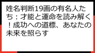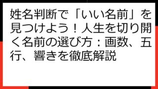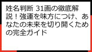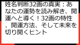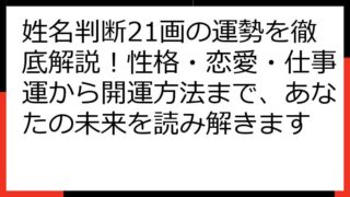 姓名判断21画:運命を読み解く!性格、恋愛、仕事運を徹底解説姓名判断に興味をお持ちのあなたへ、この記事では、姓名判断21画を持つ方の運勢について、深く掘り下げて解説していきます。21画の姓名を持つ人が持つ、性格的な特徴、恋愛運、仕事運、そし...