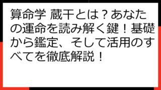 算命学 蔵干 完全解説:あなたの運命を読み解く秘伝算命学の世界へようこそ。この記事では、あなたの運命を読み解く鍵となる「蔵干」について、深く掘り下げていきます。算命学は、生年月日から個人の宿命や運勢を読み解く占術です。その中でも、蔵干は非常...