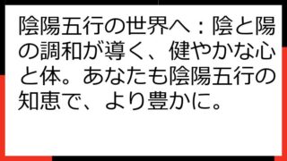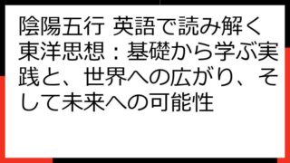 陰陽五行を英語で理解する:基礎から実践、そしてその奥深さこの記事では、陰陽五行の思想を英語で学びたいと考えるあなたに向けて、その魅力を余すところなくご紹介します。陰陽五行の基本的な概念から、実践的な応用、そしてさらなる探求まで、英語でわかり...
